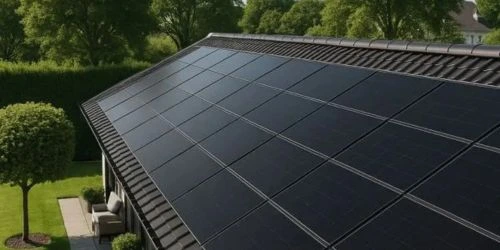 Stilren integration af solcellepaneler direkte i taget.